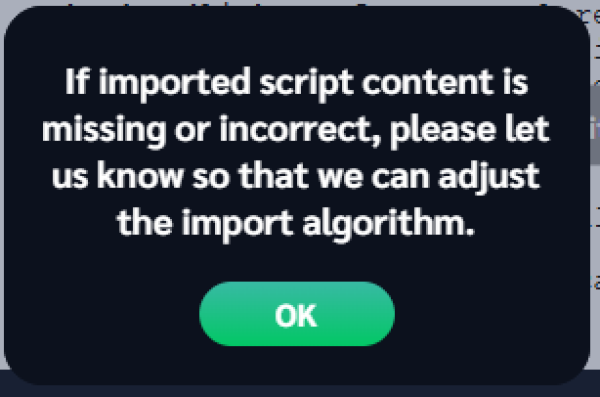 We recommend going to the Story page and reviewing the list of characters and locations. The most common import error is that a character name was typed incorrectly in the original script, and was imported as two different characters.